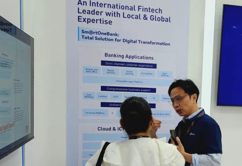 在为期三天展会中,神州信息成功吸引来自东南亚、中东以及日韩等地区100余家金融机构客户和科技伙伴到访参观,各企业代表与神州信息海外团队展开交流,众多银行对数字化银行解决方案Sm@rtOneBank表达了浓厚兴趣。Sm@rtOneBank结合海外金融机构转型需要,提供“开箱即用”一系列金融解决方案,全面赋能金融机构数字化转型之旅。